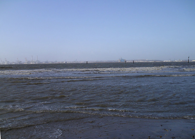 I left Le Havre about about 12 noon. What little was left of the tidal current would push me slightly out to sea and I was beating, so it was just a matter of crossing the estuary and being close to the beach to escape the river current. About an hour after low tide, I started to get a little help from the rising tidal current. The two currents against each other caused a lot of turbulence in the water, and the waves went in all directions. It was hard to keep forward speed up.