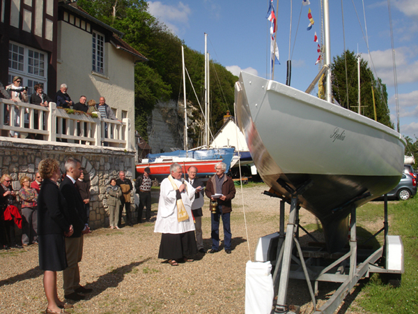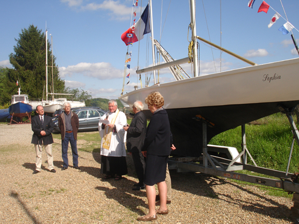 I was invited by some members of my family-in-law to bless a racing yacht that they had just restored by several years of painstaking work. The yacht, originally built in the 1930’s, neglected for many years and bought by its present owners, has been named Sophia, and lies at a sailing club on the Seine river near a town called Duclair, in the commune of Saint Pierre de Varengeville. She has not yet actually been launched, because some modifications still need to be done to the standing rigging and the yacht has no engine. The name has special meaning for me for several reasons: the profound influence of the Wisdom literature of the Scriptures in our spirituality, and the significance of the Divine Wisdom in the Christian tradition. The woman I married is called Sophie, and I named my own little dinghy Sophia. The coincidence brought me a considerable amount of pleasure. It is the second time I blessed a boat, and each time gave the same name – firstly my own, and then this graceful yacht.