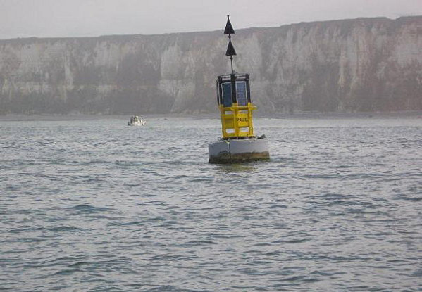 His Eminence doesn’t move very much. This is the north cardinal buoy that marks the limits beyond which boats may not approach the nuclear power station of Paluel. Here he is in all his glory! His exact position is 49° 52,1 N 0° 38,15 E (sorry I had to make a correction – Google Earth is not reliable so I found a local source).