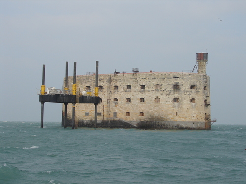 Fort Enet is a difficult landing, as there are many nasty rocks, and the gate would be firmly locked in any case. I didn’t attempt a landing, but I passed this interesting monument several times. I passed to the south of the Ile d’Aix and made my way to the Fort Boyard. Was it possible for such a tiny boat to go so far? Who dares wins. I set sail and made it.