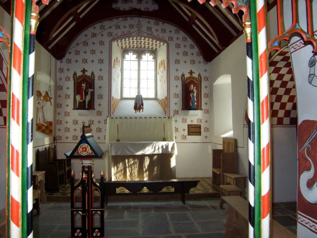 Good to see some of us have the same taste, perahps many of us. I was most pleased with the ascetics of this church. It would be nice to set up a personal chapel, modelled somewhat on the sanctuary of St. Telio’s Church, even have a hanging pyx, although it would not contained the reserved sacrament, unless I became an anchorite. I think, in some mystical way, our English Church heritage is deeply engrained in some of us which makes such things so appealing. Personally, I have the mentality of a Medieval Sarum Rite English Catholic in that things like frontals on altars, riddel posts and hanging pyxes appeal to be more than what I see in my daily experience at mass in the Roman Catholic Church. The EF mass evokes some feeling of this, but just doesn’t quite make it as far a my personal preferences and sensibilities are concerned. It would be wonderful if permission was given to celebrate the Sarum Rite Mass in this beautiful church, thus making it more than just a museum piece.