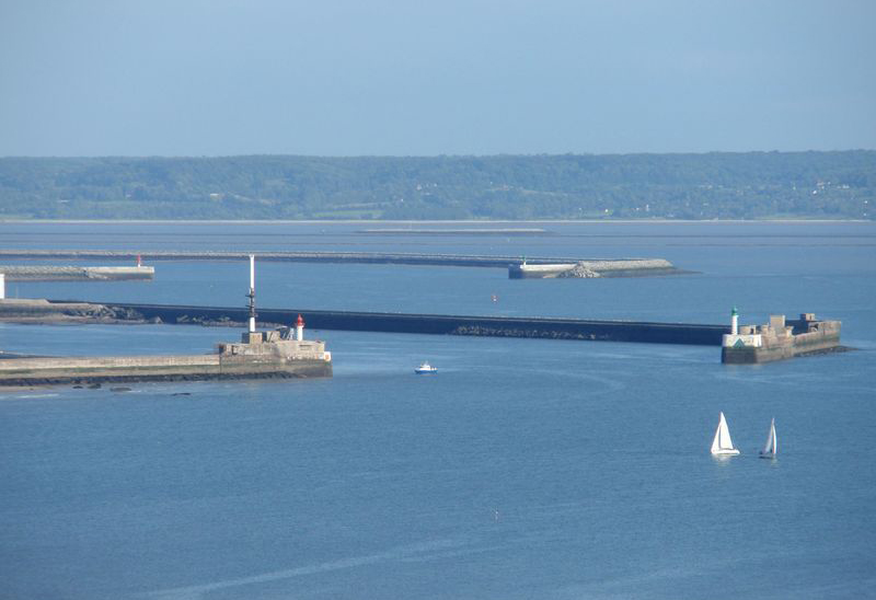 The sail was uneventful, though the cliffs to the north of the port were quite beautiful in the still hazy air of the Norman autumn. The huge cargo ships are impressive, as long as one stays out of the shipping channel, marked by the usual green starboard and red port buoys. I also had to watch for their wake waves. A small boat can cross the shipping channel, but it needs to be done quickly, and having made sure that nothing is coming in from the sea or out from the port. Mercifully, the shipping channel is quite narrow and can be crossed in about five minutes in a good beam wind, the distance between the port and starboard channel buoys.