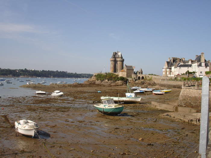 I should add a note about tides in the Rance. They are artificial because of the hydroelectric dam built in the early 1960’s. Their system makes the tide of the Rance follow the sea tide by about two hours to get maximum power into the generator turbines. On the Rance, the tide remains high for a long time, and low for a long time, with the intermediates remaining very short. It seems very strange, like sailing under bridges!