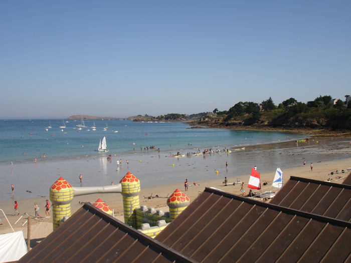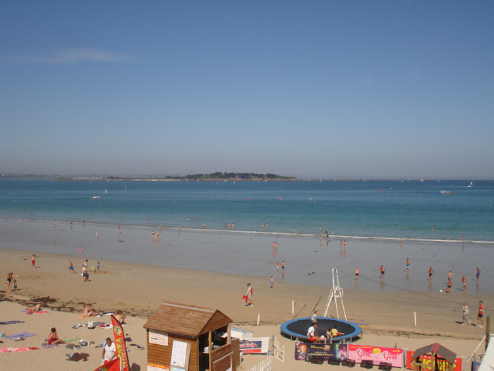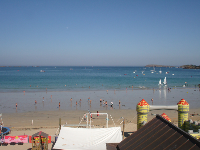 The lovely beach to the north of Cancale was a difficult spot to find a parking slot for the van. I detached the trailer and found a little place for it, too small for a car, near the launching ramp. After doing the round a couple of times, I found a parking slot half way along the promenade. Most people were having their lunch in restaurants or picnicking, and that left me a little peace and quiet to rig the boat. Milling crowds of people on holiday are something quite unpleasant!