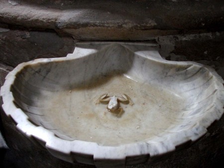 This odd holy water stoup in the collegiate church of St Paul in Narbonne is carved with a representation of a frog. The legend goes that the frog was a real one and started croaking during Mass and was petrified by God. C’est minion!