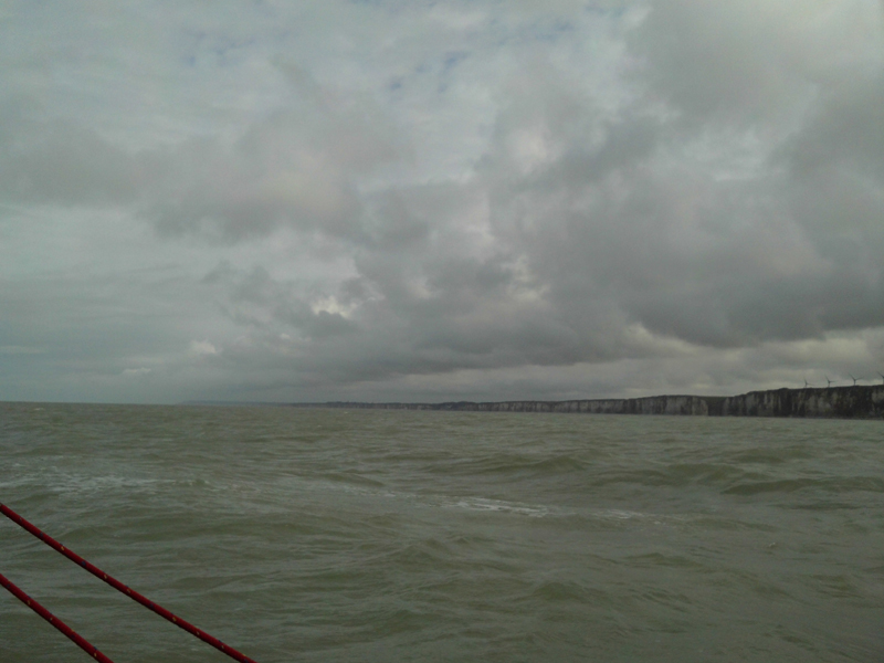 I was hove-to as I took the Varangeville headland just behind my mainsheet. The weather looks quite nasty over Dieppe.