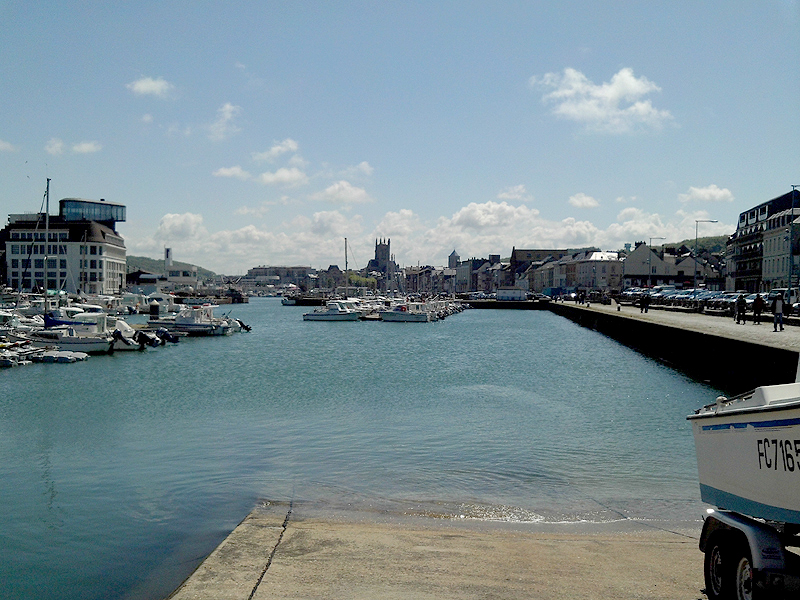 After taking these photos, the choice was to give up and go home or sail out of a port. I therefore went to Fécamp and launched my boat from the sheltered slipway. I could then run before the wind, turn to port and go into a beam reach and then tack to get out of the port. The port entrance is quite narrow like Saint Valéry en Caux, so I would come about at the very last moment before touching the wall. Some nice gusts enabled me to point up better and get out of the port with fewer tacks – quite energetic exercise.