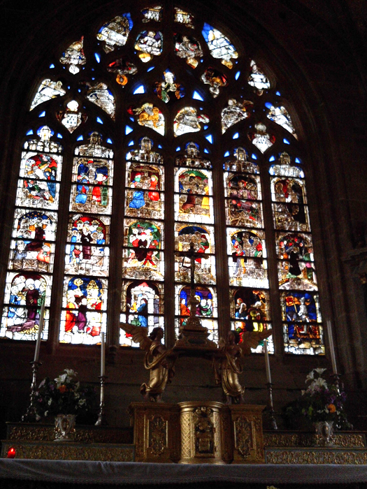 The next day, we went to Quimper and visited the cathedral, heavily restored in the nineteenth century. I rather like the baldachino over the high altar which fits in well with the late gothic architecture. It is a pity to see a choir full of chairs and the ubiquitous table in front of the altar for facing-the-people celebrations.