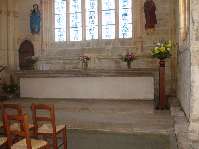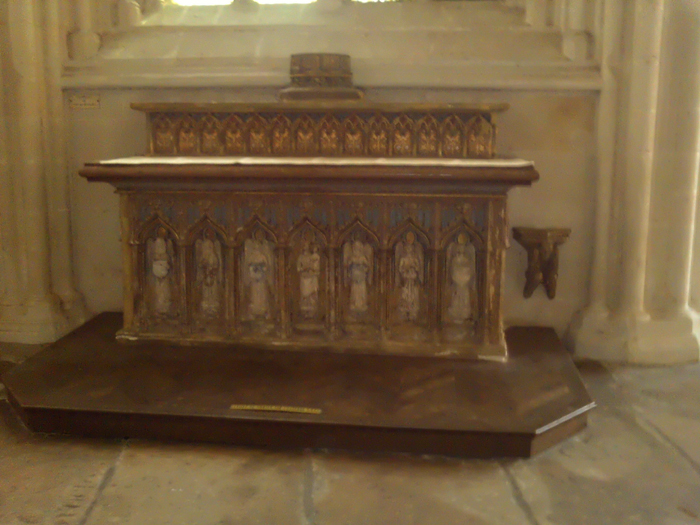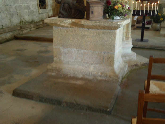 This side altar looks medieval, and unfortunately had a big chunk broken from it at some time.