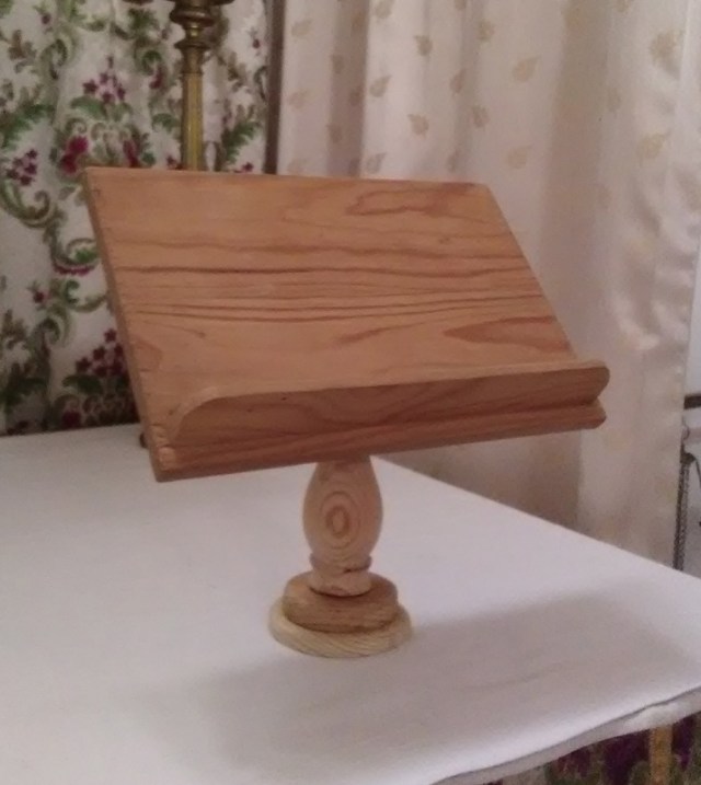 An alternative form, which I made some years ago in oak, is foldable and also designed for smaller format books. I presently use it in my sacristy for holding the Ordo.