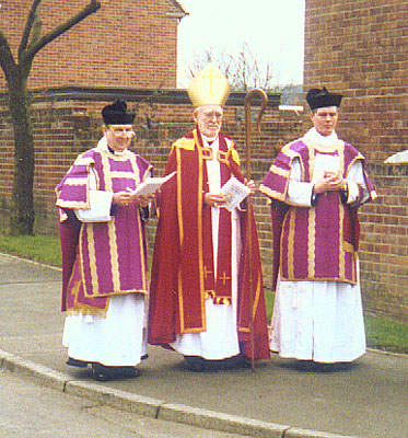 On 29 July 1990 Bishop Robin Connors of the A.C.C. in the U.S.A. preached at Sung Mass at Knutton near Longton. Leslie Hamlett went to a meeting of A.C.C. Bishops and others at Victoria, British Columbia  Canada held from 24th September to 5th October 1990 to seek permission to join the Anglican Catholic Church.  Permission was given for a “Fellowship of Clergy and People” to be set up in the U.K. and within the T.A.C.   Bishop Robin Connors strongly supported Leslie Hamlett’s petition and by 14th December 1990 he had agreed to act as Visitor.   On 27th February 1991 Bishop Connors visited the U.K. and on 3rd March 1991 he blessed the Church building at Madeley Heath and confirmed several candidates.  In the afternoon of 3rd March 1991 there was a meeting of the Executive Committee (of the Fellowship of Clergy and People – see p.1.) at which all recommendations of Bishop Connors were agreed “nem. con.”   Some of the recommendations were to do with intercommunion with other “continuing” Anglicans, notably the A.E.C. (American Episcopal Church  They were agreed to by everyone at the meeting, including Leslie Hamlett.  Later Leslie Hamlett had the agreement to the recommendations set aside.  Whatever the merits or otherwise of this affair, which ended in the Deerfield Beach Event, Leslie Hamlett jettisoned Bishop Robin Connors (who had been so great a supporter) and cast in his lot with the remnant of the A.C.C. in the U.S.A.