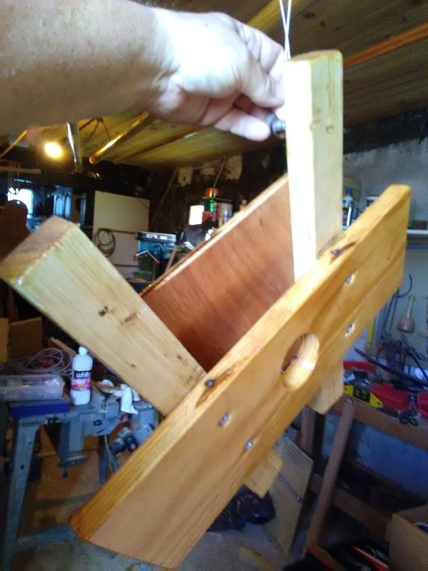 This funny thing is the mast step to go down into the bottom of the boat. The weight of the mast will hold it down, and four galvanised bolt heads will engage into four recesses in the bottom of the hull. It is designed not to move. It is also getting its “magic” varnish!