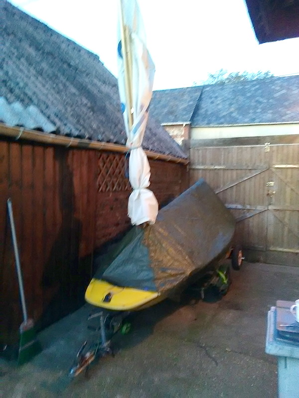 The boom tent is held by three elastic cords that go under the hull. For this, the boat needs to be out of the water and on a grassy or muddy bank. It is not like the tent on Sarum designed to be put up whilst the boat is at anchor or moored. Sophia becomes a land tent for the night. That is at least the theory which I don’t imagine trying out before next April or May.