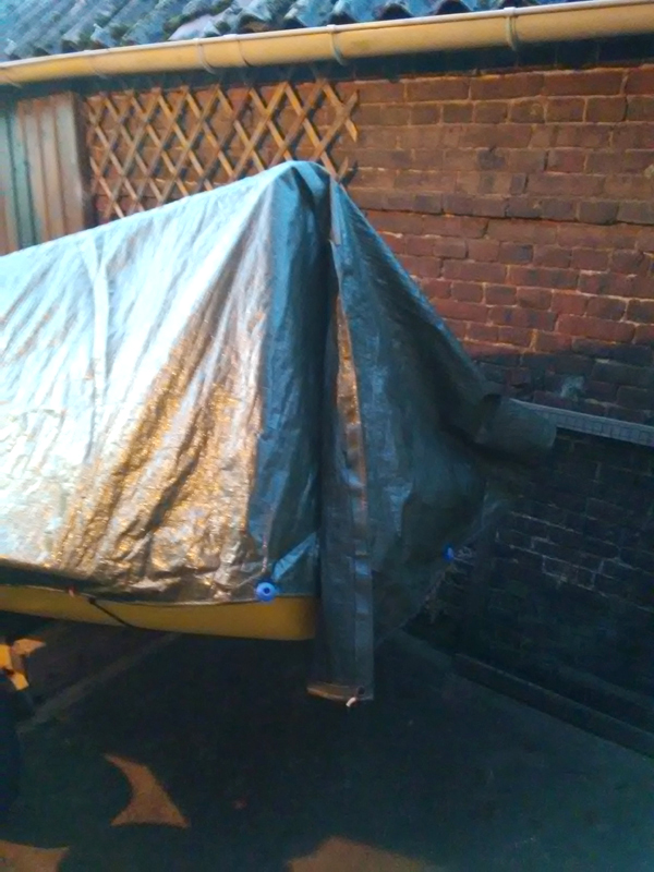 An inspiration came into my mind today, that of pursuing the role of my little plastic Tabur 320 (named Sophia) as a river cruiser, able to go under very low bridges and even be hauled out of the water for getting round obstacles like weirs and rapids. I found that the first boom tent I made for Sarum fitted perfectly. On Sarum, I made a new boom tent because I needed more headroom given that my sleeping arrangement went on two boards that served during the day as extra-width cockpit seats.