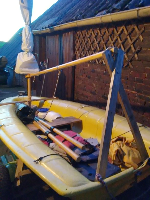 Inside, the rowing thwart can be lifted out and placed at the opposite side of the boat from where I will sleep, likewise for the oars and other stuff. My galley box will have to be very small and compact and have a very simple camping gas burner. It has to be severely minimalist! The tent goes nicely over the fore of the boat and should keep the rain out, if necessary with the aid of a small plastic board, perhaps the boat’s centreboard.
