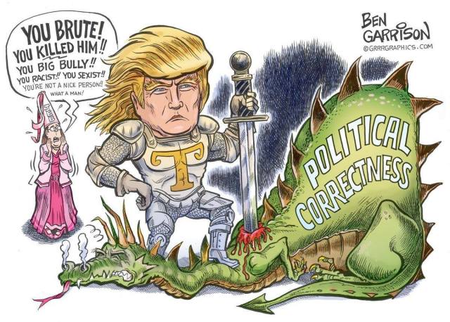 Whether Mr Trump’s combat is truly against ideology and conformity and for rational debate in terms of social doctrine, the common good and justice, the cartoon is thought-provoking.