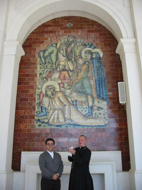 This photo was taken at the basilica of Fatima, where I found myself holding a dove and standing next to one of the ICAB bishops.
