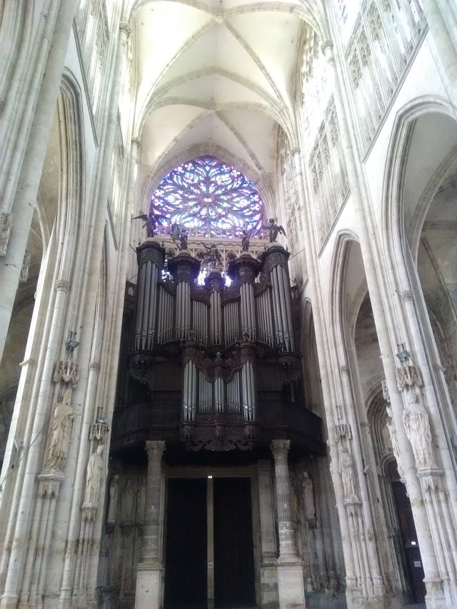 I went today to an organ recital at St Ouen in Rouen, where there is just about the finest Cavaillé-Coll organ ever built. The recital was played by Thomas Lacôte, titular organist of the Holy Trinity church in Paris where he succeeds Olivier Messiaen. He played music by Bach and Messiaen on the themes of life and death. The piece I found most moving was Messiaen’s Combat de la Mort et de la Vie from the organ cycle Les Corps Glorieux composed in 1939.
