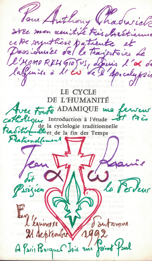 I am sensitive to this subject, because I discovered a different dimension of Christianity when I was at university in Switzerland. I participated in a church history seminar on Liberalism in which the name of Félicité de Lamennais was emphasised, a view of religion and the secular state that was condemned by Gregory XVI in his encyclical Mirari Vos of 1832. Like Modernism in the 1890’s and 1900’s, the word came to describe a very wide and imprecise worldview, notably promoting ideas like the separation of Church and State and a more open theological view than Thomism. My acquiring and reading Bernard Reardon’s Religion in the Age of Romanticism (Cambridge 1985) opened a completely new view of what Catholicism meant to me. I discovered German Idealism as an alternative view of epistemology and truth as a transcendent to which the soul yearns rather than pretends to possess. Many years later, I discovered Novalis, the young man who died of TB in 1801 having lived in the Saxony part of what is now Germany. In the early 1990’s when I was still a seminarian at Gricigliano, I was introduced to an amazing man living in Paris. His name was Jean Phaure. He had been born in French Vietnam. He wrote the book Le Cycle de l’Humanité Adamique, introduction à l’étude de la cyclologie traditionnelle et de la fin du temps. He wrote many other books too. It was a great privilege to meet him and to be invited to eat Vietnamese meals as he revealed to me a whole new world. When I discovered Novalis, this pen name rang with me – we walk new paths in fidelity to the great Tradition. My love of Romanticism suddenly converged with my discovery of Perennial Traditionalism, something much deeper than simple conservatism of nineteenth and early twentieth century authoritarian Catholicism. Another author who entered my world was René Guénon.